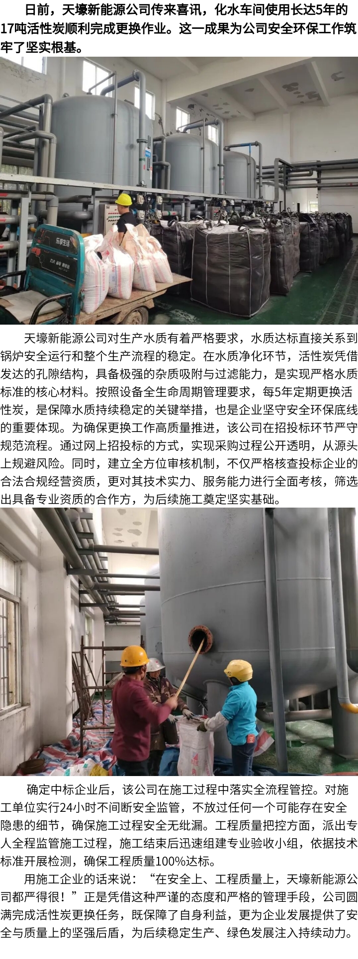 天壕新能源公司更换使用长久的活性炭获成功